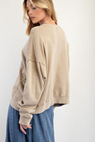 Long Sleeves, Mineral Washed Dropped Shouldes, Rounded Neckline Raw Cut & Emphasized seams Ribbed Band Cuffs and Bottoms, Front Flower Patch detailing Loose and Relaxed fit 100% Cotton