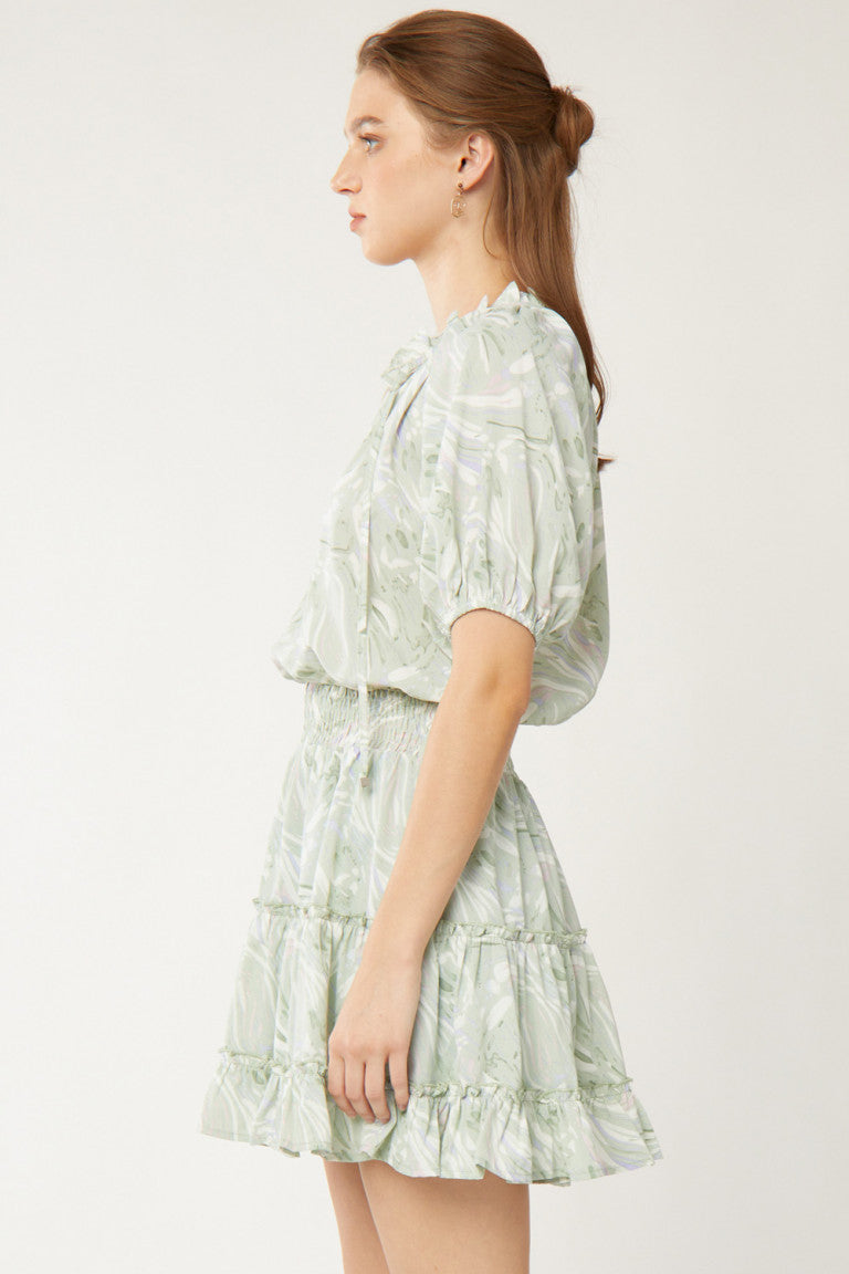 Printed Puff Sleeve Tiered Dress