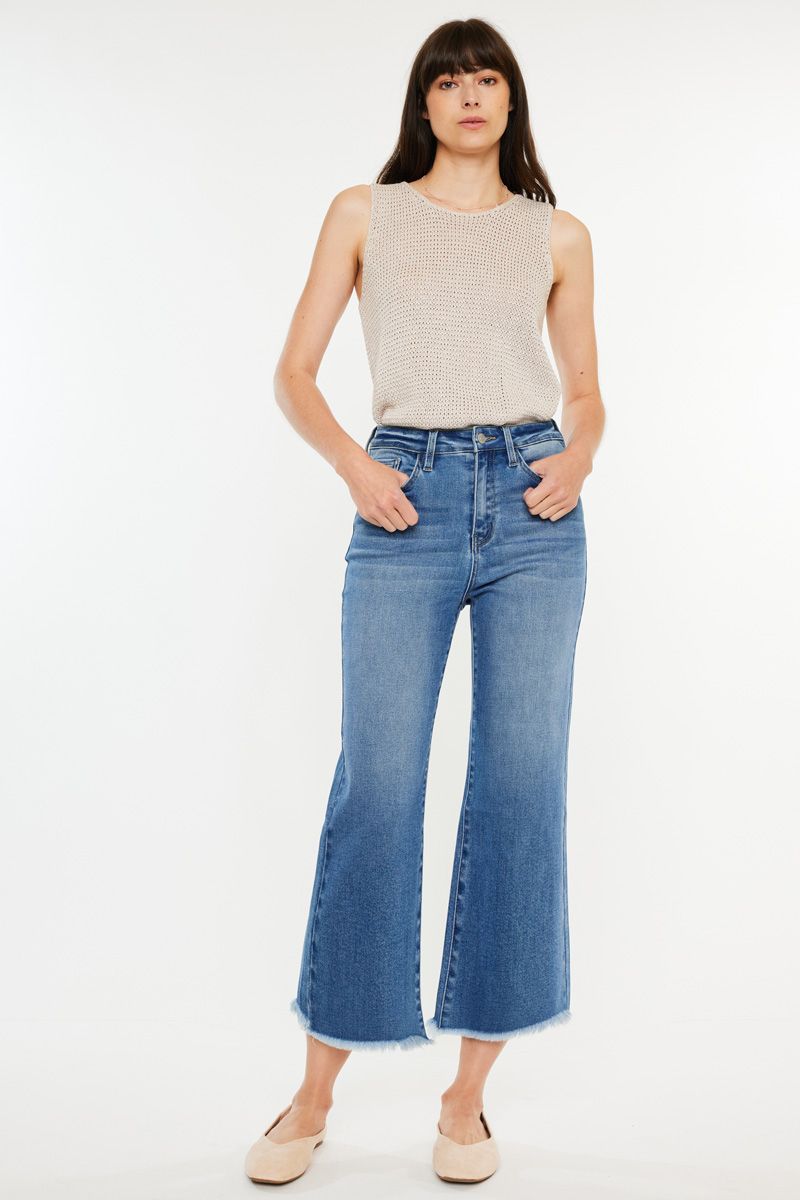 Capri Flare Jeans-Kan Can Jeans High Rise Medium Wash Stretch Frayed Hem 11 Rise 23 Inseam