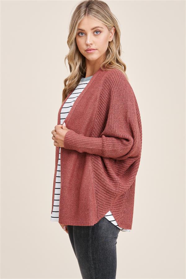 OPEN FRONT, LONG DOLMAN SLEEVE, CROPED SWEATER CARDIGAN