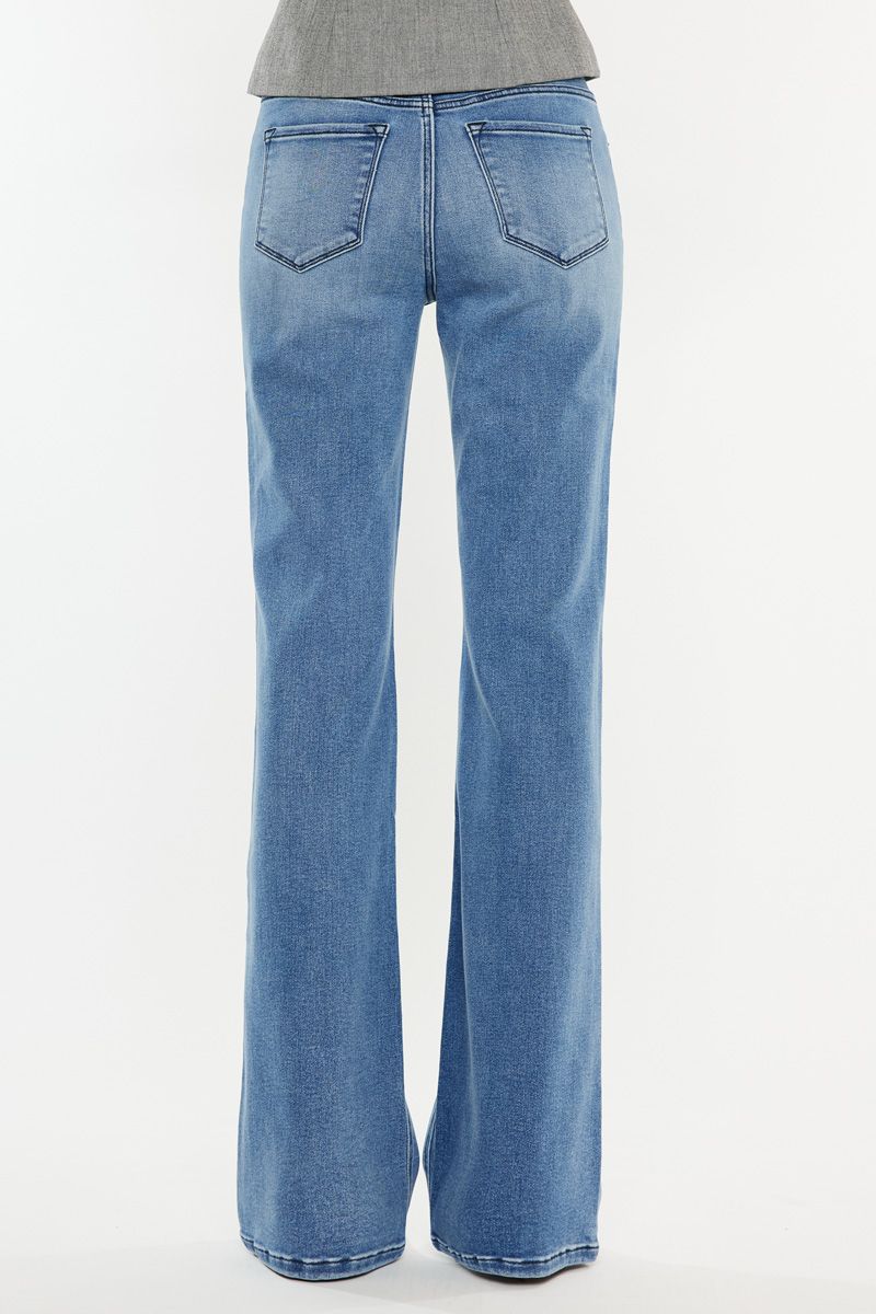 Ultra High Rise Wide Flare Jeans Medium Wash Stretch Regular Hem Double Wasitband Ziper Fly 11" Rise 34" inseam 75% cotton, 23% Tencel, 2% Spandex